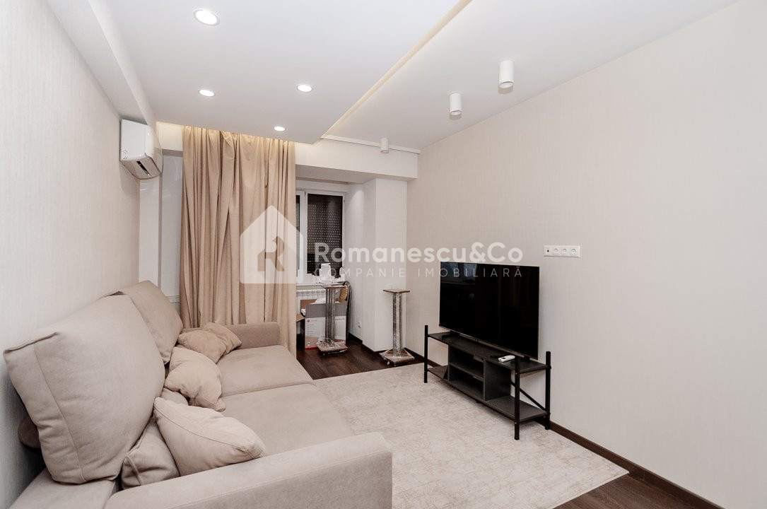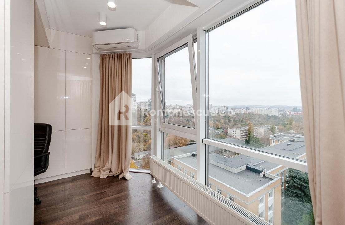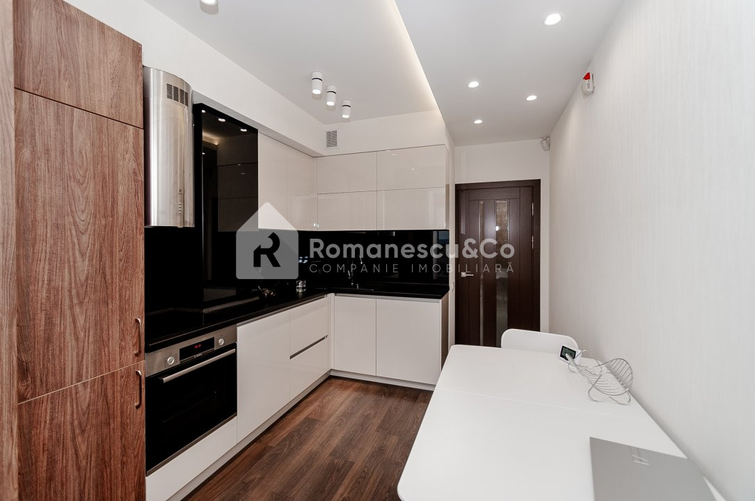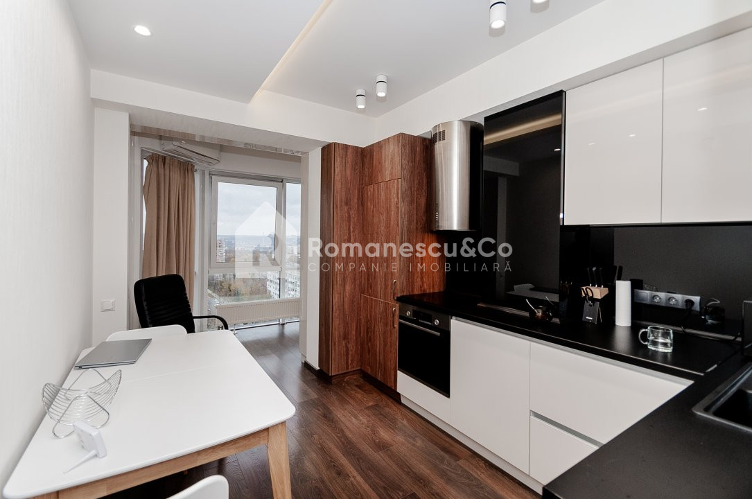 Apartamentul are o compartimentare funcțională cu 2 camere separate și o bucătărie spațioasă cu geamuri panoramice spre oraș.