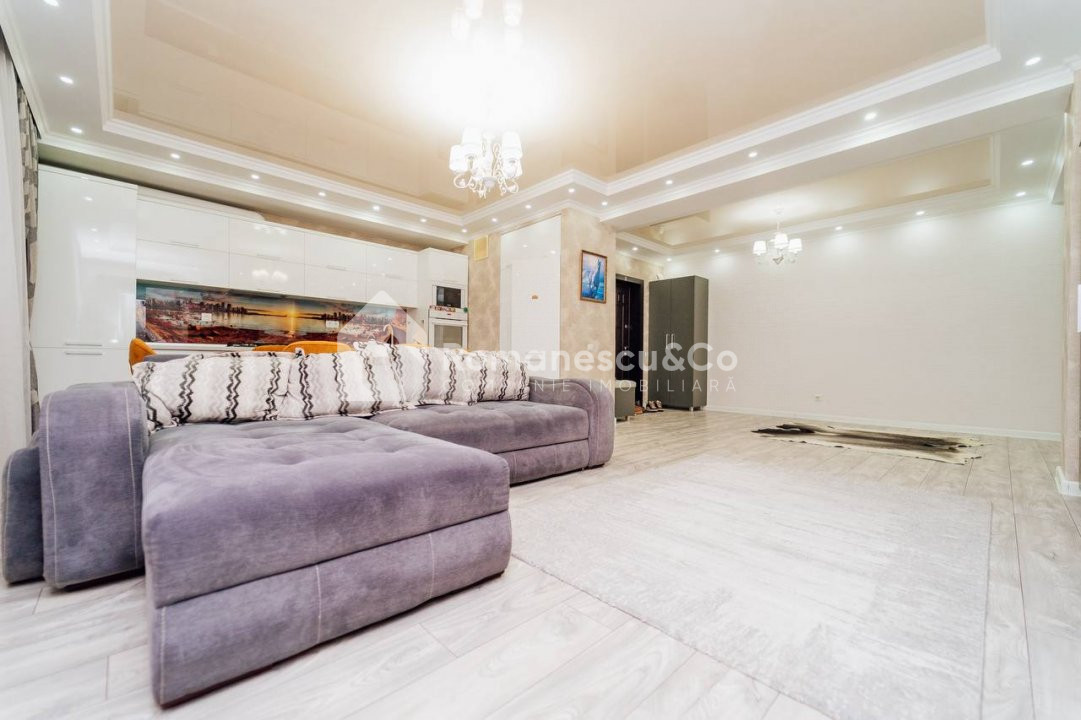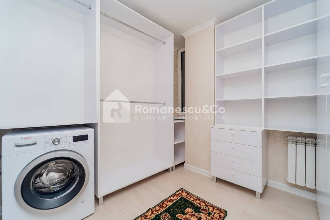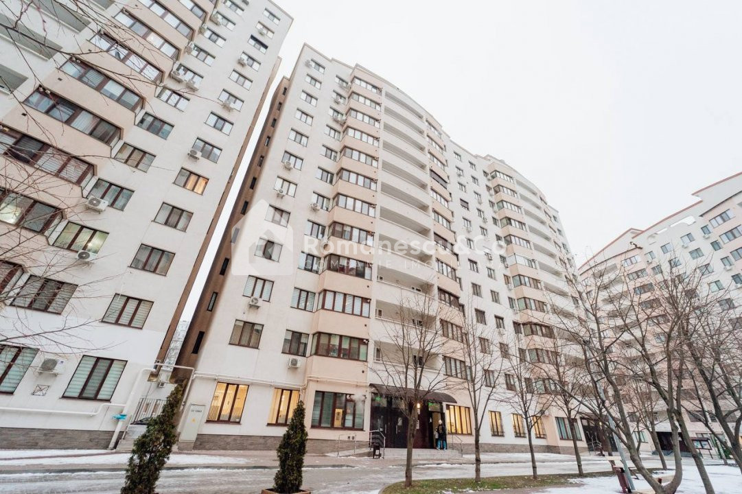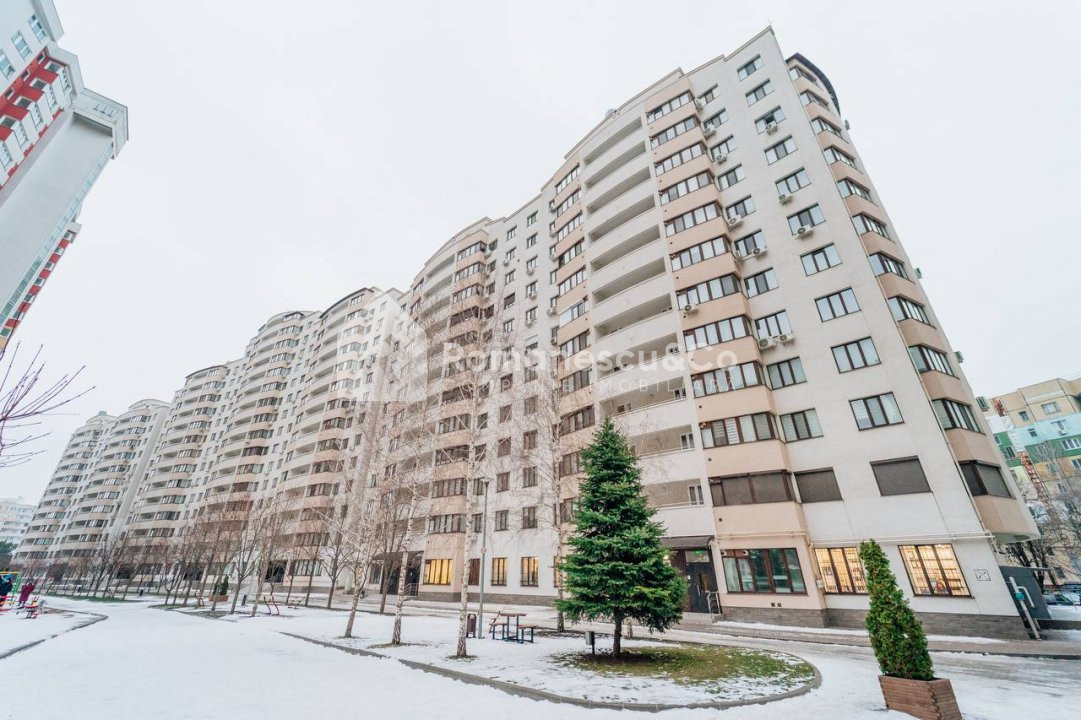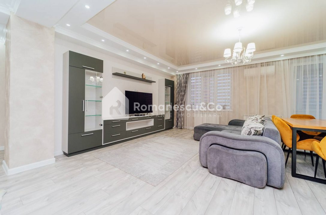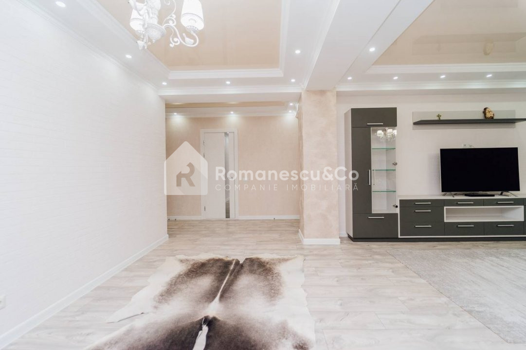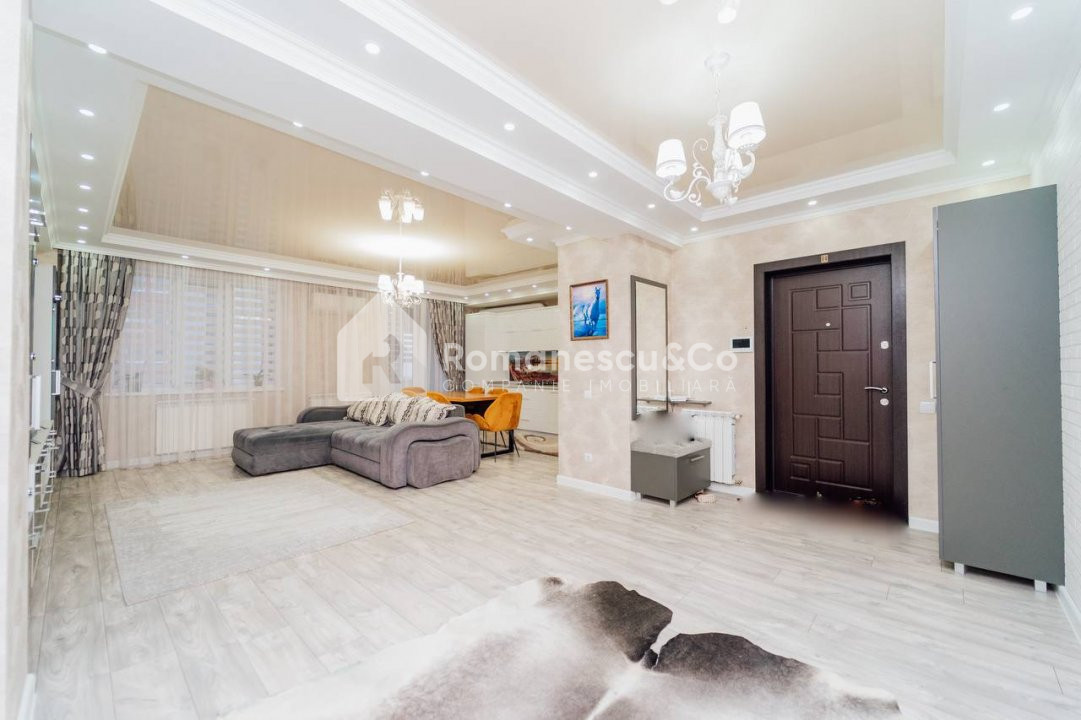 Se oferă spre închiriere un apartament modern, spațios, cu suprafața de 95,80 mp, situat la etajul 10 al unui bloc nou.