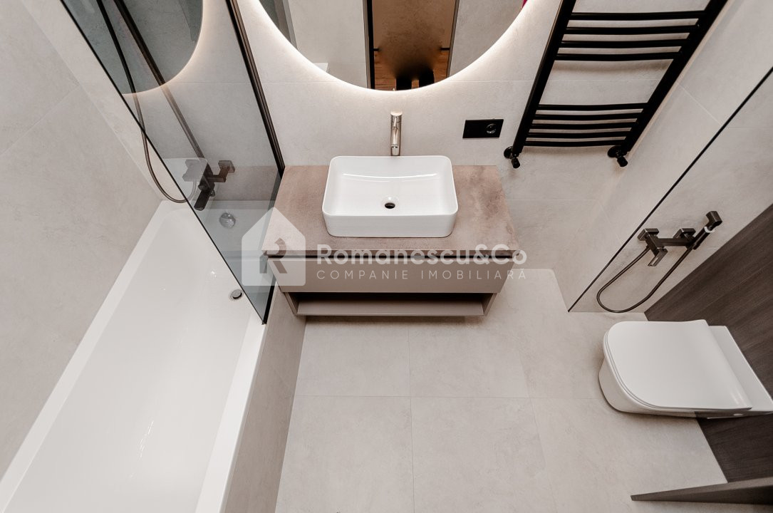 Bloc sanitar combinat, finisat cu materiale de calitate.