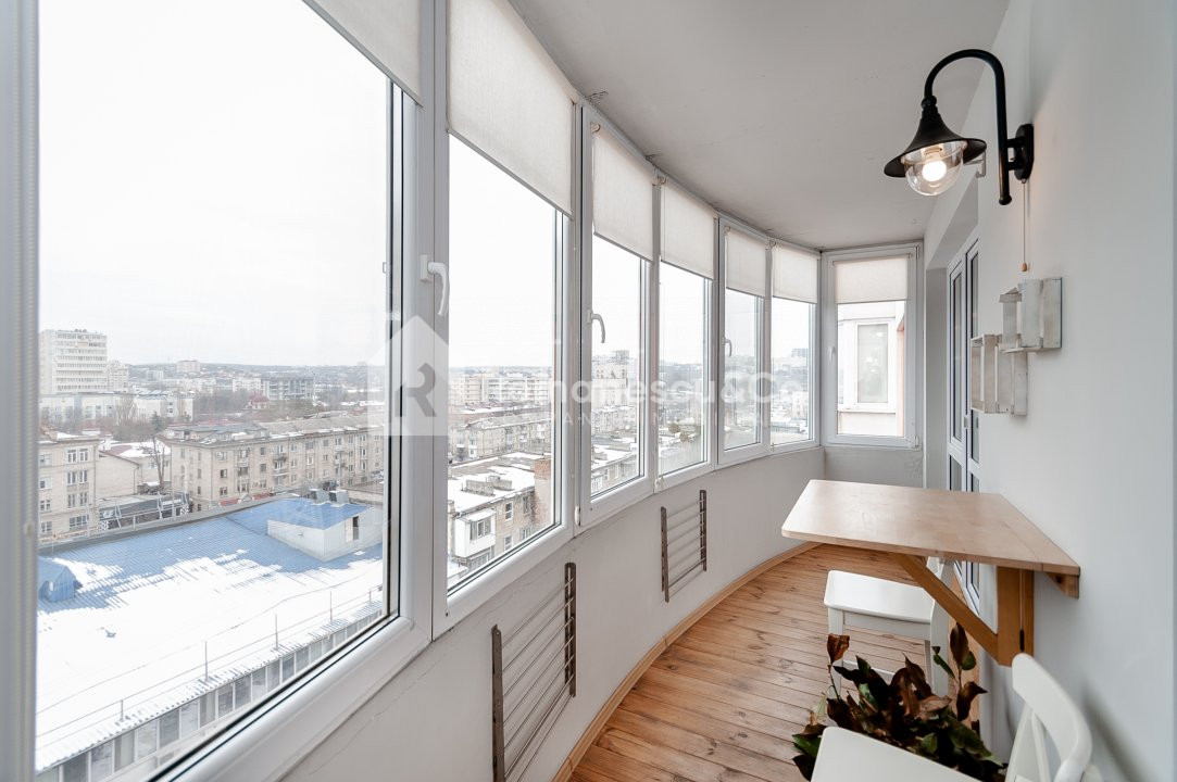 Situat la etajul 8 al unui bloc nou, apartamentul beneficiază de o vedere panoramică asupra orașului și de lumină naturală pe tot parcursul zilei.