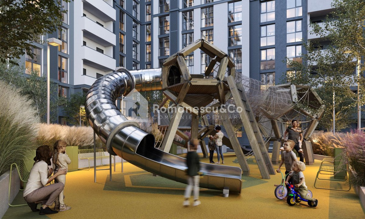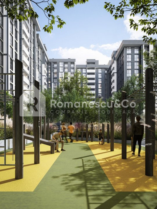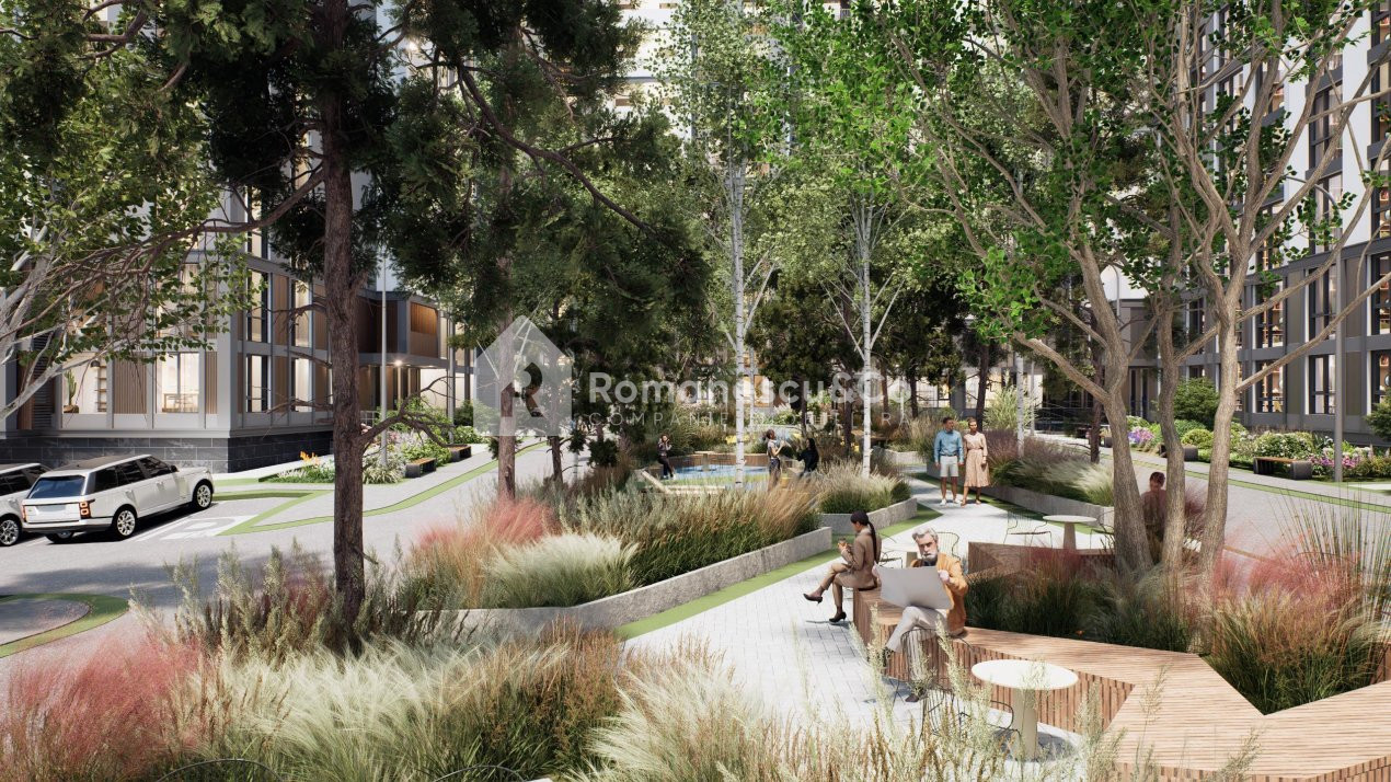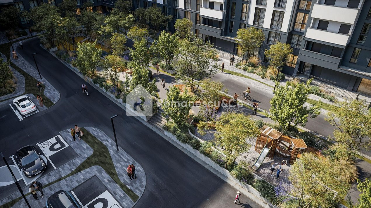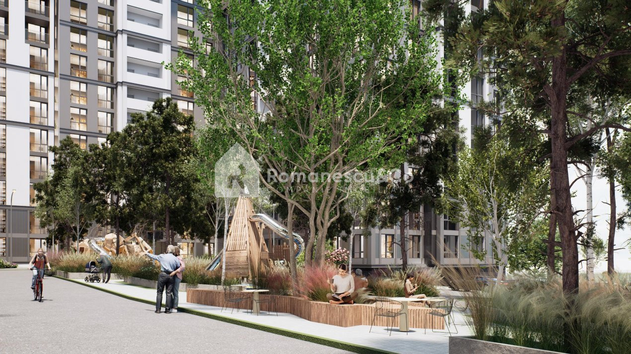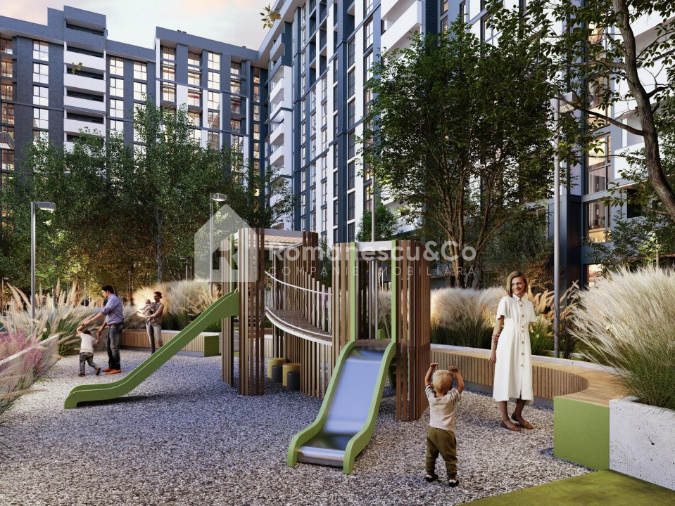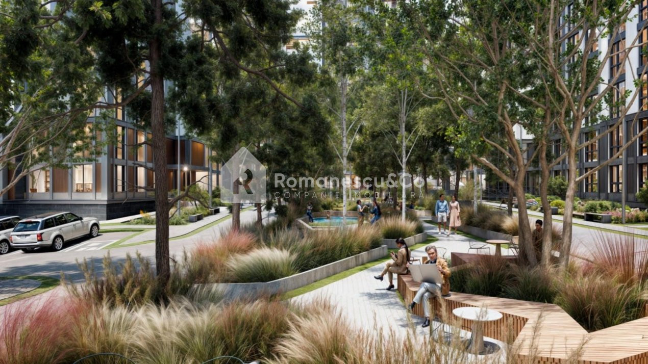 • Parc verde lângă clădire, ideal pentru relaxare