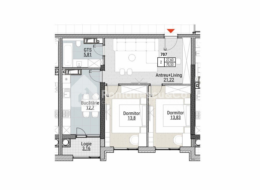 Suprafață: 70.53 m²