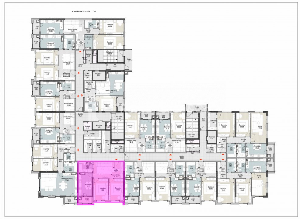 Etajul 7 oferă liniște, intimitate și priveliști panoramice superbe spre natură și zonele verzi.