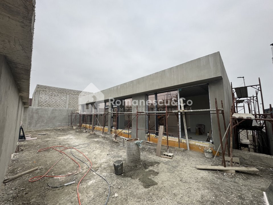 I nivel: bucătărie, living generos, bloc sanitar și ieșire directă în curte