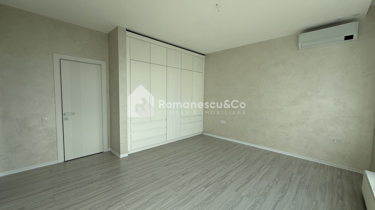 Dormitor matrimonial cu bloc sanitar propriu și garderobă.