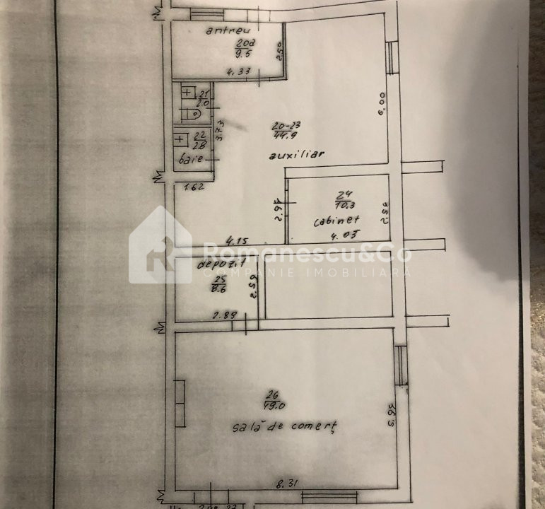 Compartimentare: în prezent, spațiul este împărțit în 3 săli, însă poate fi replanificat cu ușurință sau transformat într-un open space