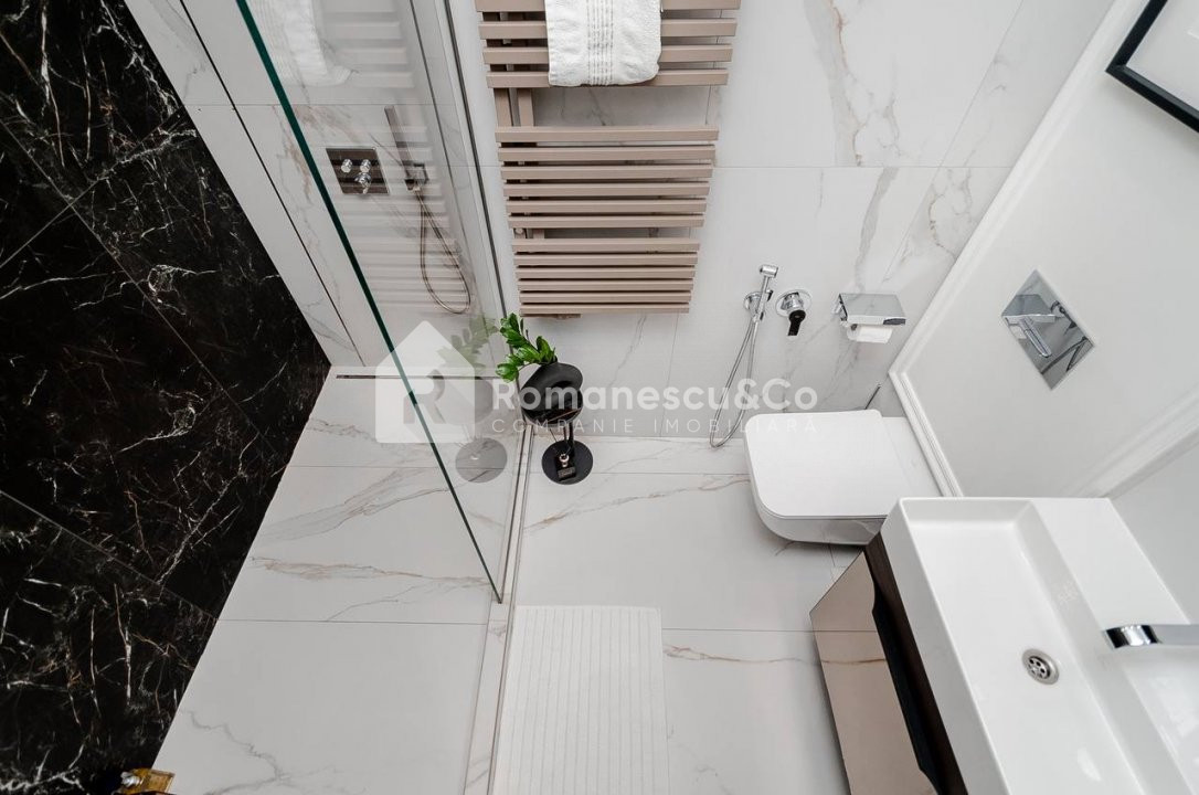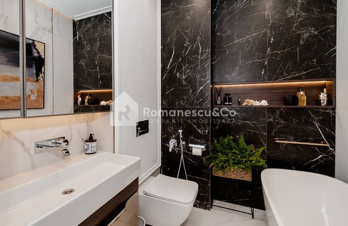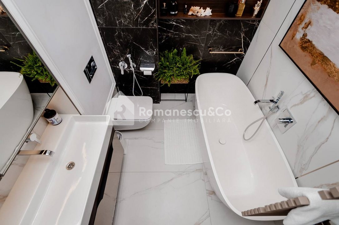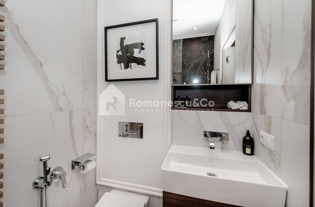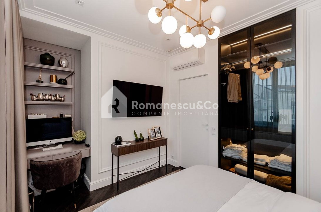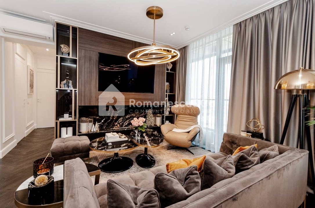 Apartamentul are o suprafață totală de 90 m², este amplasat la etajul 5 din 12, într-un bloc nou, construit de dezvoltatorul Crown Plaza. Se vinde exact în starea prezentată în poze, cu mobilier și detalii atent alese.